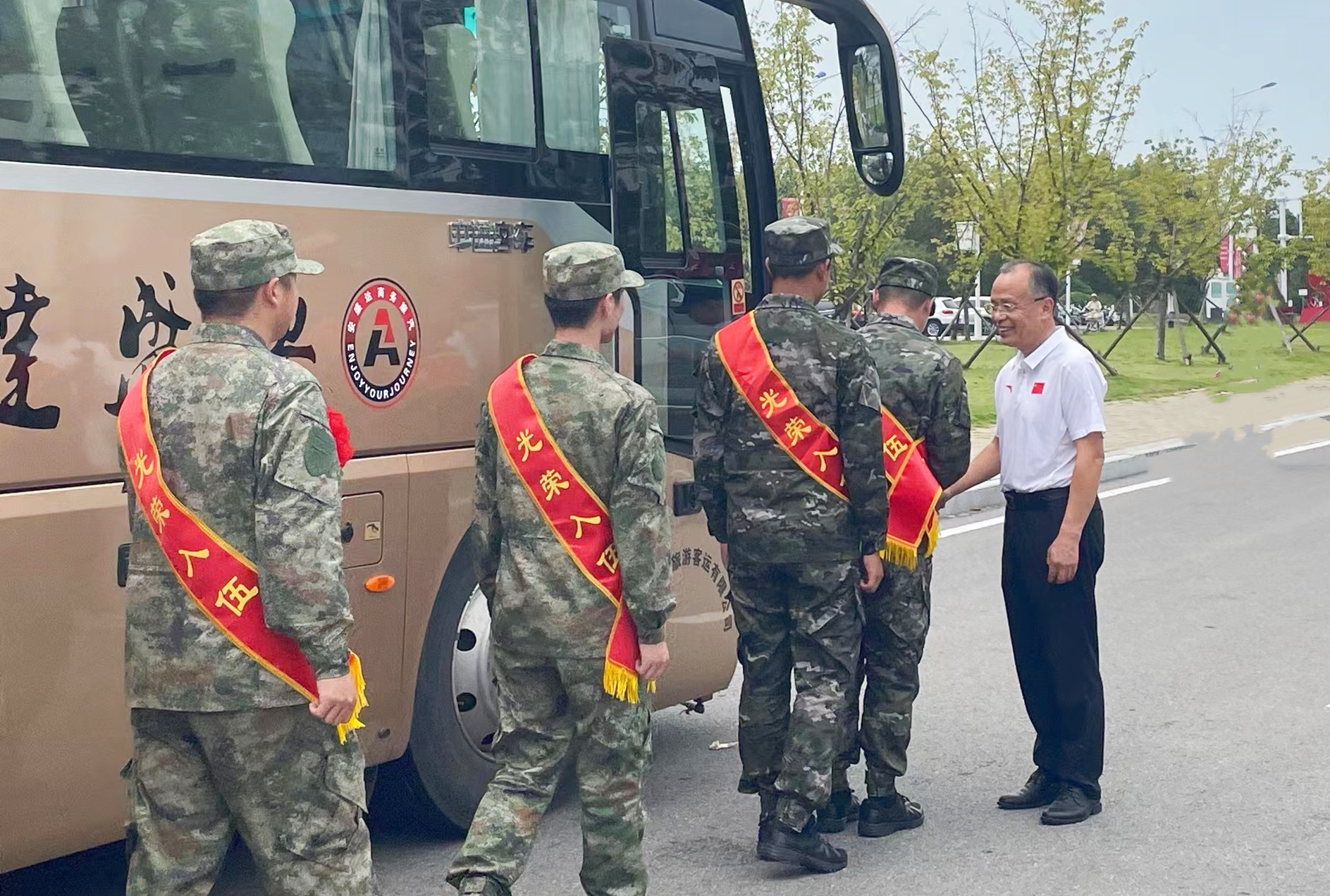 欢送会上,郭永存、董雨等分别向入伍新兵颁发入伍奖励金,并赠送了纪念品。党委武装部部长方运纪为入伍大学生佩戴“光荣入伍”绶带和红花。