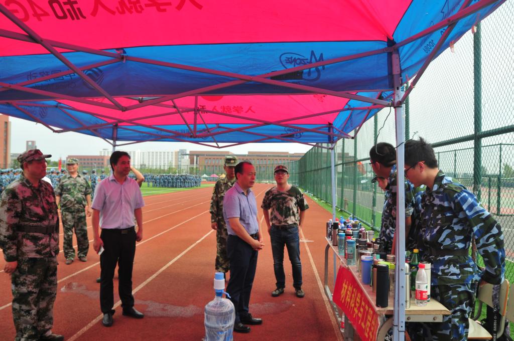 8月19日上午,校党委书记郭永存,校党委常委、副校长、校2016级学生军训领导组组长吴照明来到2016级学生军训场地,看望慰问参训学生、承训教官和各营学生辅导员。